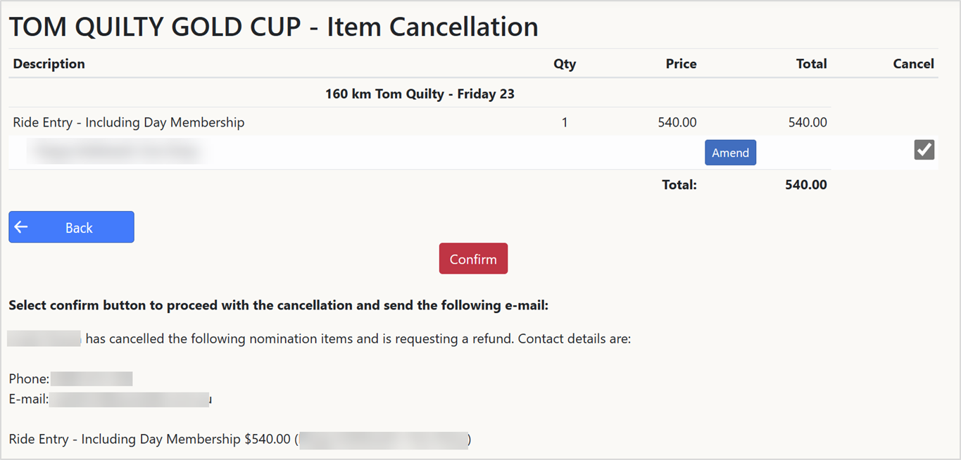 If you have nominated for a ride and paid your entry fee you can cancel your nomination and obtain a refund if circumstances prevent you from attending the ride. Follow these steps to process the cancellation: