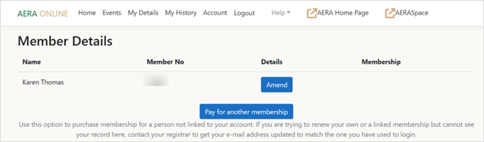 - Select the ‘My Details’ menu item which displays the Member Details section.